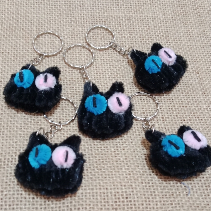 Gantungan kunci handmade dari bahan kawat bulu dengan bentuk karakter kucing, cocok untuk sovenir