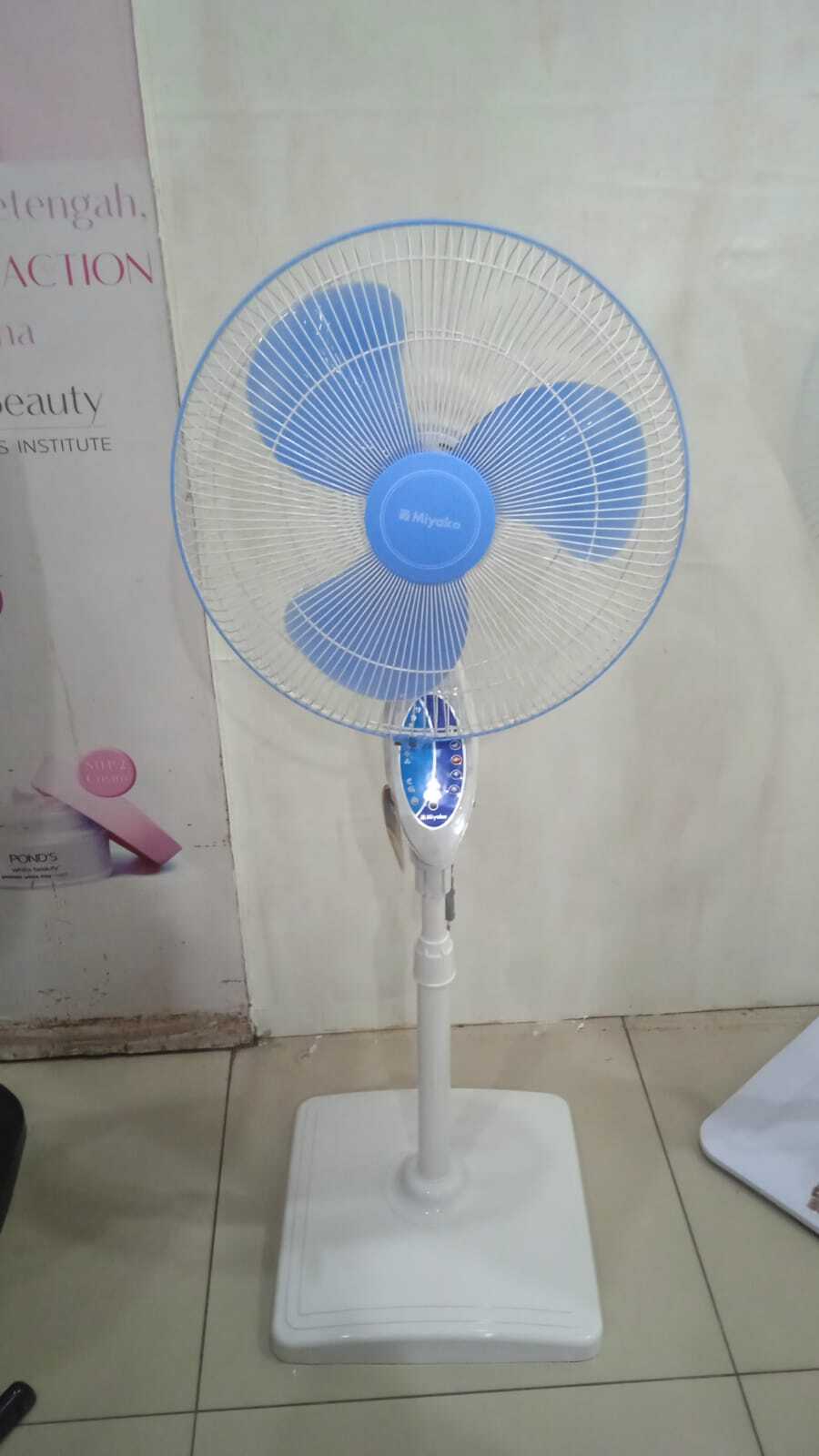 KIPAS ANGIN MIYAKO TJR-101 Fungsi Stand Fan, Desk Fan, Wall Fan Speed 3 Timer 7.5 Jam Base Square Base Switch Remove Control, Soft Touch Daya 55 W Tegangan 220 Vac Frekuensi 50 Hz Motor kipas terbuat dari 100% tembaga sehingga lebih tahan lama, tidak mudah terbakar, dan putarannya lebih kuat Hembusan angin ekstra kencang (Extra Strong Wind) Baling-baling kipas lebih kokoh dan solid (Strong Blade) TEJARI (3 in 1) yang dapat berfungsi sebagai kipas TEmbok, kipas meJA, dan kipas berdiri Fitur Magic Wind untuk mengatur hembusan angin dengan mode Normal, Auto, dan Sleep Dilengkapi Remote Control Tampilan tombol kecepatan berbentuk Soft Touch yang sangat mudah digunakan Dilengkapi Timer yang dapat diatur hingga 7,5 jam Suara kipas tidak bising saat digunakan (Smooth Sound) Fitur Thermofuse yang dapat mencegah terjadinya overheat pada motor kipas Garansi Motor Kipas selama 3 tahun Telah memenuhi standar SNI Telah mendapatkan Sertifikat Hemat Energi (SHE)