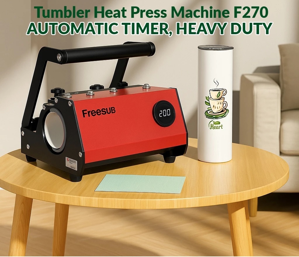 Mesin Press 5 in 1 Mug dan Tumbler F270 merupakan model terbaru dari FreeSub Indonesia yg bisa untuk Transfer gambar ke Mug/Tumbler dengan diameter 7.5 - 8.5 dengan panjang bahan hingga 26 cm. Dengan Mesin Press ini memungkinan untuk Mentransfer Mug/Tumbler 11 oz hingga 30 oz. Model: F270 : Model Heavy Duty + Handle Brand: FreeSub ( Produk Asli dan Bergaransi Resmi FreeSub Indonesia ) Spesifikasi F270 : Diameter Maks.: 7.5 - 8,5 cm Panjang Bahan Maks.: 26 cm Suhu Maks.: 210C Waktu Maks.: 999 detik Untuk Press Mug/Tumbler Coating Sublime ukuran: * Mug 11 / 15 Oz: 2 mug bersamaan * Tumbler: 16 Oz, 20 Oz, 30 Oz Watt: 620W Garansi Resmi 3 tahun FreeSub Indonesia ( Spare Part + Service )