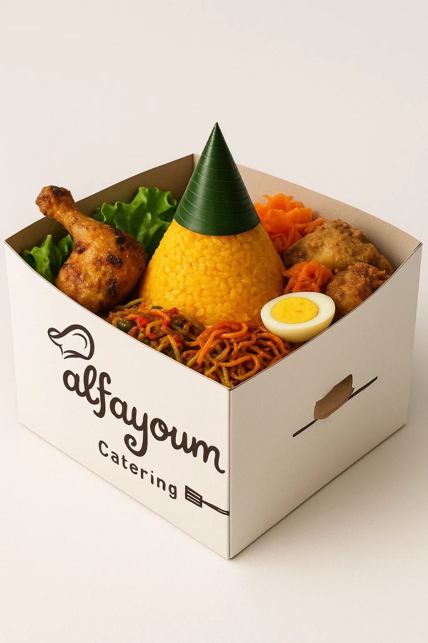Nasi Kuning Alfayyoum Catering – Sajian Lezat & Penuh Makna Nikmati kelezatan Nasi Kuning Alfayyoum Catering, hidangan tradisional Nusantara yang kaya cita rasa dan sarat makna kebahagiaan. Dimasak dari beras berkualitas dengan santan gurih dan rempah pilihan, nasi kuning ini cocok untuk berbagai acara spesial, mulai dari syukuran, ulang tahun, arisan, hingga rapat kantor. Isi Paket Nasi Kuning: ✅ Nasi Kuning Pulen & Wangi – Berwarna kuning cerah dari kunyit alami dan santan gurih. ✅ Ayam Goreng Bumbu Rempah – Empuk, gurih, dan meresap sampai ke dalam. ✅ Telur Balado – Telur rebus diselimuti sambal balado pedas-manis. ✅ Perkedel Kentang – Lembut, gurih, dan renyah di luar. ✅ Serundeng Kelapa – Taburan kelapa berbumbu khas Nusantara. ✅ Sambal Goreng Kentang Ati – Kombinasi kentang dan hati ayam berbumbu pedas gurih. ✅ Pelengkap: Irisan mentimun segar Kerupuk renyah ✅ Bonus: 1 botol air mineral ukuran 600 ml ???? Mengapa Memilih Nasi Kuning Alfayyoum Catering? ✨ Rasa autentik khas Indonesia yang istimewa ✨ Bebas pengawet, dimasak fresh setiap hari ✨ Dikemas higienis dan praktis, siap santap di mana saja ✨ Cocok untuk acara formal maupun santai Pesan sekarang dan rasakan kelezatan nasi kuning tradisional dalam sajian lengkap yang memanjakan lidah – hanya di Alfayyoum Catering!