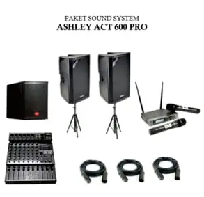 Spesifikasi : Professional 2-way Active Speaker / LF 1 * 15 'With 3' VC, 60oz Magnet / HF 1.75 'Titanium Driver / 1/4 and XLR Mic Input 2XRCA & XLR Line & 3.5mm Aux Input / XLR IINE Out / Mp3 Level, Mic Level, Echo Level, Line Volume Frequency / Response Level : 45HZ-20kHz / Class-H Bi-Amp Amplifier Power: 300watt + 50watt / 5 Band Graphic Equalizer / Material: Plastic Box With Painting Texture / Grill : Metal / Color : Black Paket Terdiri dari : - Speaker Aktive 15 Inch Ashley ACT 600 PRO : 2 Unit - Subwoofer Baretone 15 Inch SW 15 1300 Watt : 1 Unit - Mixer 8 Channel Ashley Remix 802 : 1 Unit - Mic Wireless Ashley Mc Pro : 1 Set - Stand Speaker Besi : 2 Unit - Kabel Speaker XLR 10 M : 3 Unit
