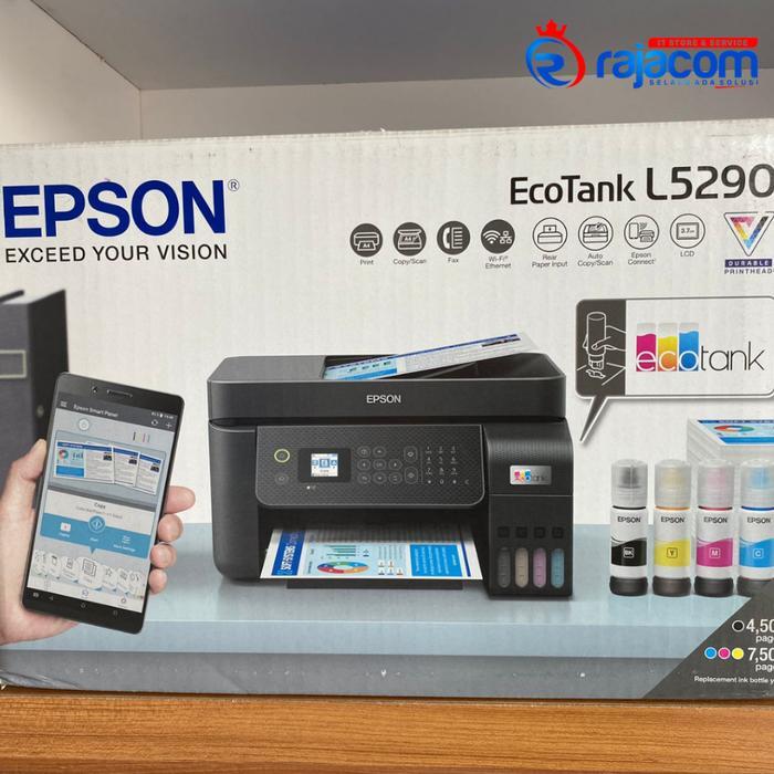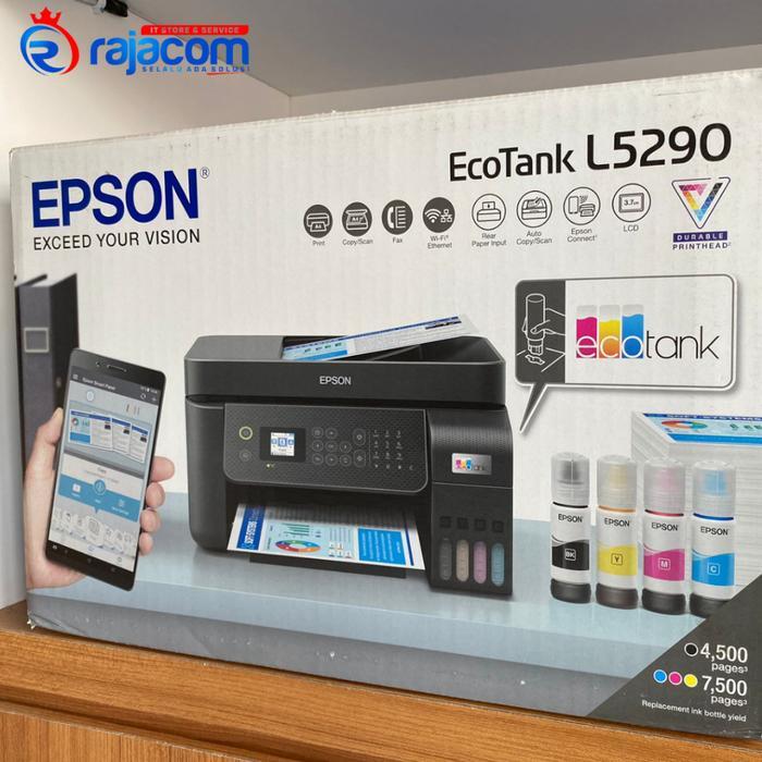 Spesifikasi Printer : Jenis Printer : Multi Fungsi / Print, Scan, Copy, Fax with ADF - Mencetak Kecepatan Mencetak : hingga 10.0ipm (Hitam), 5 ipm (Warna) Maksimal Resolusi Mencetak : 5760 x 1440 dpi -Copy Kecepatan Mengcopy : hingga 7.7 ipm (Hitam) / 3.8 ipm (Warna) Maksimal Jumlah Copy dari Standalone : 99 copies Maksimal Resolusi : 600 x 600 dpi - Scan Maksimal Resoulsi : 1200 x 2400 dpi Maksimum Area Pindai : 216 x 297 mm Kecepatan Memindai : hingga 11detik (Monokrom), hingga 28detik (Warna) Fax Function : Type of Fax : Walk-up Black-and-white and Colour Fax Capability Receive Memory / Page Memory : 1.1 MB, Page memory up to 100 pages Fax Speed (Data Transfer Rate) : Up to 33.6 kbps, Approx. 3 sec/page Fax Resolution : Up to 200 x 200 dpi Transmission Paper Size Flatbed : Letter, A4 ADF : A4, LTR, 8.5 x 13'', Legal, Oficio 9, Mexico-Oficio, Indian-Legal Receiving Paper Size : Letter, A4, Legal Speed Dial / Group Dial : Up to 100 numbers, 99 groups Fax Features : PC Fax (Transmission / Receive), Automatic Redial, Address book, Broadcast Fax (Mono Only), Transmit Reservation, Polling Reception Aplikasi Print via Mobile : - Epson iPrint, Epson Email Print, - Remote Print Driver - Epson Smart Panel - Epson ScanSmart Sistem Operasi : - Windows XP / XP Professional / Vista / 7 / 8 / 8.1 / 10, - Windows Server 2003 / 2008 / 2008 (R2) / 2012 , - Mac OS X 10.5.8 or later Konsumsi Daya : Saat beroperasi : 12 W Posisi Standby / Nyala : 4.5 W Kondisi Sleep : 0.7 W Power Off : 0.2 W Kode Tinta : 003 Jumlah Warna : 4 warna Page Yield : Hitam : 4.500 lembar, Warna : 7.500 lembar KELENGKAPAN • Printer Baru Epson L5290 • New Box / Dus Printer • 4 Botol Tinta 003 Black, Cyan, Magenta, Yellow (Sesuai Varian) • Kabel Power & Kabel USB • CD Driver • Buku Manual Instalasi dan Form Garansi Garansi : 2 Tahun