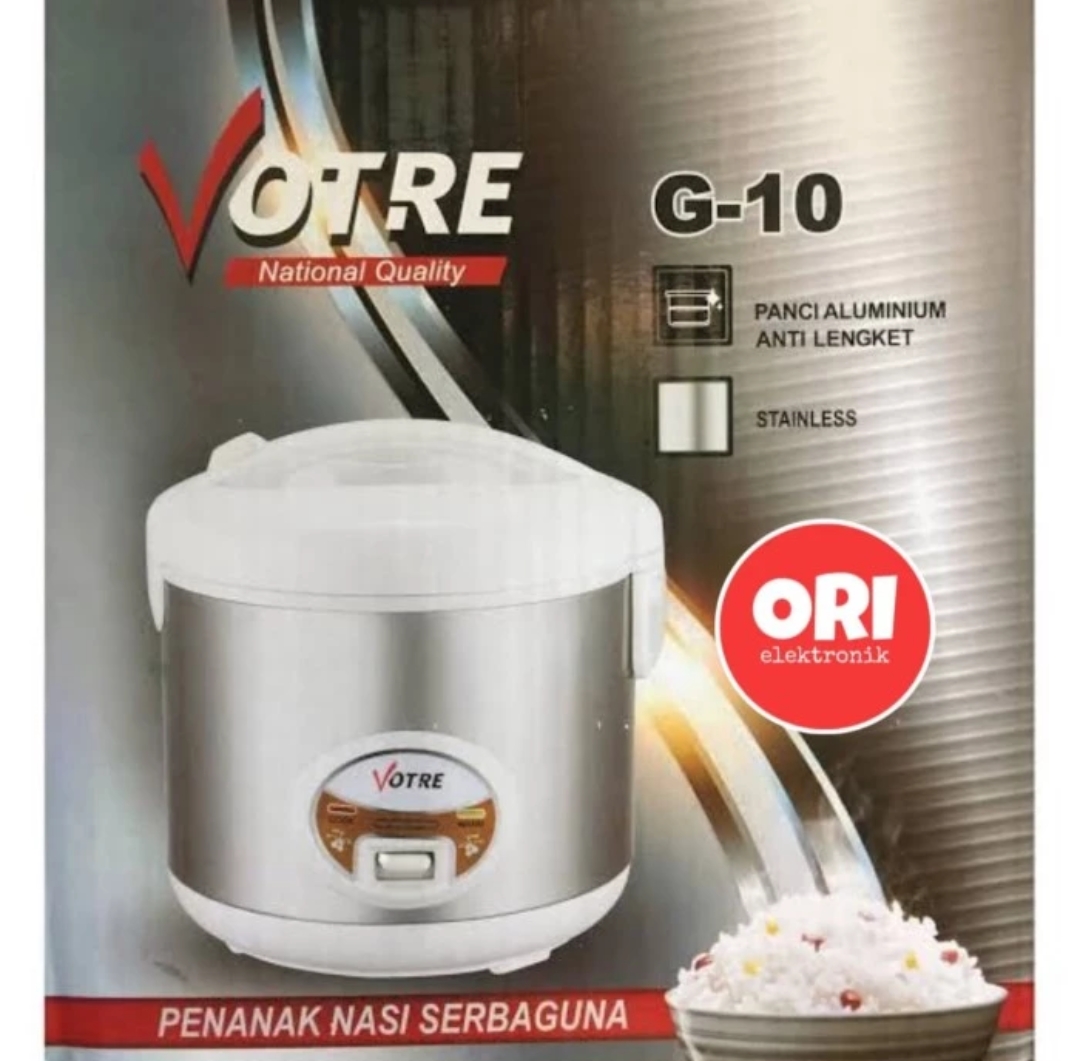 Hemat Listrik Khawatir apabila perangkat dapur Anda akan mengunakan daya listrik yang besar? Rice Cooker Votre G10 hanya memerlukan daya listrik hanya sebesar 350W untuk memasak nasi. Kapasitas memasaknya mampu menampung hingga 1.2 L. Kapasitas besar ini membuat Anda dapat memasak untuk seluruh keluarga tanpa kekurangan dan kesulitan. Desain Minimalis Dibuat dengan bodi plastik dan alumunium pan, cocok diletakkan di mana saja. Rice cooker ini memiliki bentuk bulat dengan warna putih yang elegan sehingga pas sebagai pendamping wadah lauk di meja makan atau di dalam dapur. " -Kapasitas 1.2 L -Penggunaan Listrik 22V/50Hz -Daya Listrik 350W -Temperatur 157⁰C -Panjang Kabal 1 meter -Dimensi 22 x 22 x 24cm -SNI (Standar Nasional Indonesia)