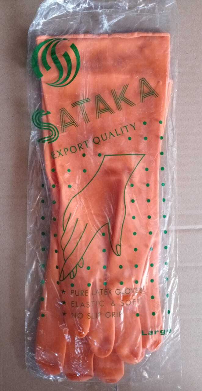 Sarung tangan karet digunakan untuk melindungi tangan dari kontak langsung dengan kotoran, kuman, dan bahan kimia berbahaya yang dapat menyebabkan iritasi kulit, kulit kering, atau masalah kesehatan lainnya. Kegunaannya mencakup berbagai aktivitas, seperti membersihkan rumah tangga (mencuci piring, membersihkan kamar mandi), berkebun (melindungi dari kotoran dan tanaman), hingga pekerjaan industri (penanganan bahan kimia, pengolahan makanan). 1 pcs = 1 pasang