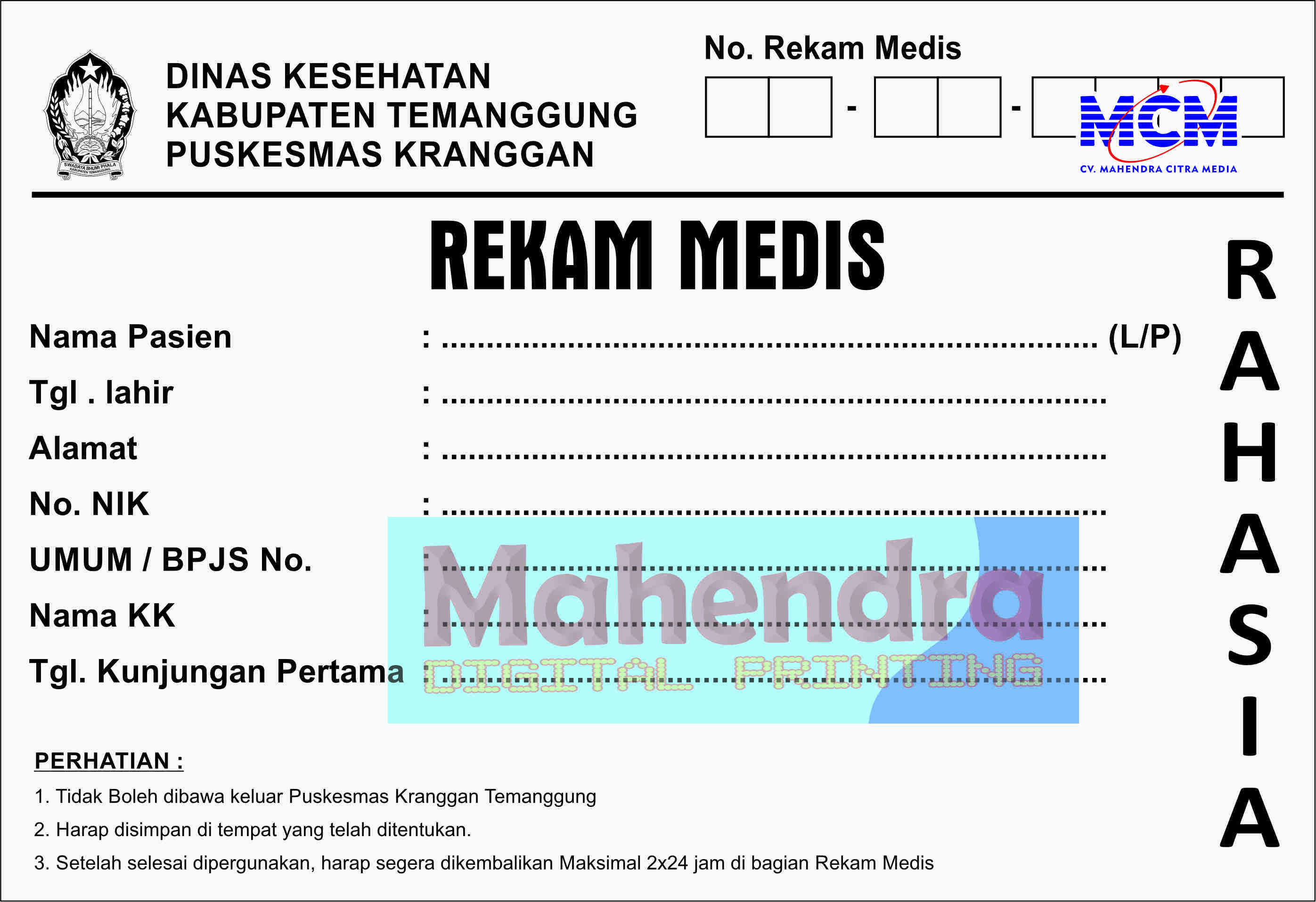 MAP FAMILY FOLDER/MAP REKAM MEDIS dicetak dengan menggunakan kertas marga 350 gsm dilengkapi dengan kantong untuk tempat kertas/surat-surat, minimal pesan 500pcs